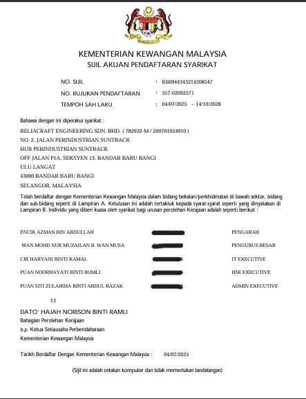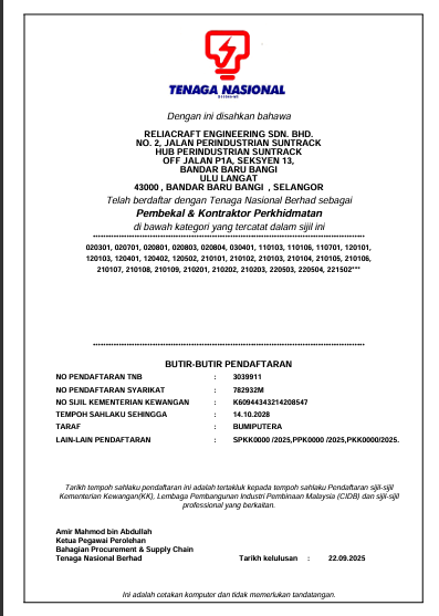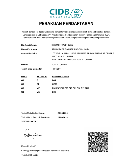 Reliacraft Engineering Sdn Bhd was established in 2007, our team has succeeded in understanding the needs of the industry and creating reliable products to serve them all.